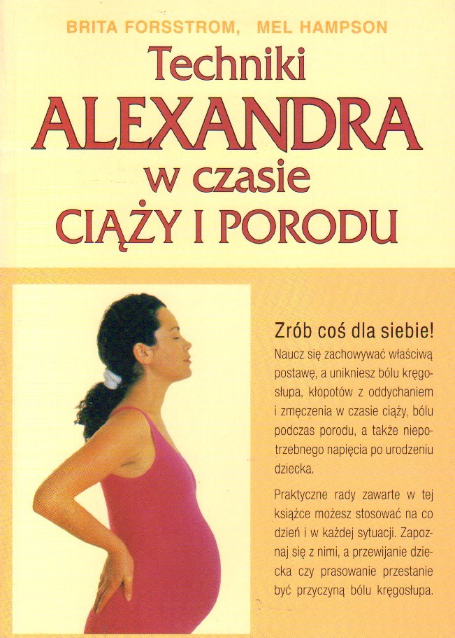 Techniki Alexandra uczą, jak wyeliminować nawyki niewłaściwego używania własnego ciała, które najczęściej objawiają się fizycznymi dolegliwościami, takimi jak bóle kręgosłupa, poirytowanie i bóle głowy. Autorki tej książki piszą, jak korzystać z tych technik w czasie ciąży, podczas porodu i w pierwszych latach macierzyństwa, czyli w okresie wielkich zmian w życiu każdej kobiety. Piszą na temat tego, co się dzieje z ciałem matki, oraz udzielają praktycznych rad dotyczących utrzymywania prawidłowej postawy i radzenia sobie z ciężarem rosnącego dziecka/ mówią o ruchu i pozycjach, które pomagają odzyskać prawidłową postawę oraz ułatwiają poród, o tym, jak uniknąć w czasie ciąży bólu pleców, kłopotów z oddychaniem, zmęczenia, a także o sprawach ważnych po porodzie - jak opiekować się noworodkiem i dbać o siebie.