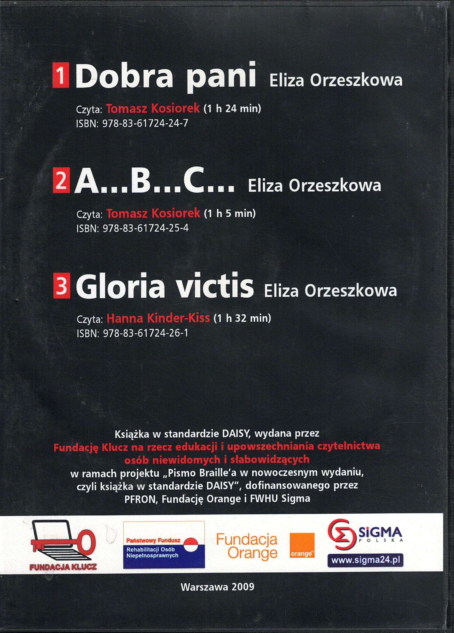 Czytają: Tomasz Kosiorek (Dobra pani, A... B... C...), Hanna Kinder-Kiss (Gloria victis).