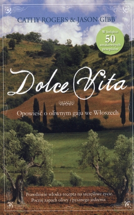 Cathy i Jason rezygnują z dobrze płatnej pracy producentów telewizyjnych w Los Angeles. Wraz z roczną córeczką wyruszają w podróż ku nowemu życiu we Włoszech. By zrealizować życiowe marzenie, kupują zaniedbany gaj oliwny w malowniczym Loro Piceno i z każdym dniem ich życie nabiera włoskiego smaku. Jak przekonają miejscowego policjanta, że mieszkają tu już na stałe, choć w domu nie ma wody ani prądu? Czy poradzą sobie z zabawną ekipą robotników-lekkoduchów? Czy zniechęcą sąsiada do kłusowania w ich ogrodzie? Dolce Vita to nie jest tradycyjna opowieść o zachodach słońca nad Morzem Śródziemnym czy odbudowie zrujnowanego domu. To odświeżająco szczera opowieść o tym, co się dzieje, gdy człowiek rzuca się w nieznane, a życie na pustkowiu tylko wzmaga pragnienie powrotu do miasta. Dowcipnie napisana, urocza opowieść, która ukazuje początki życia w obcym kraju bez otoczki romantyzmu. Dolce Vita to prawdziwa oliwkowa epopeja. Pod koniec tej opowieści czytelnik będzie wiedział znacznie więcej o oliwie, zatęskni do Włoch, poczuje głód i nie będzie chciał się rozstać z Cathy i Jasonem.