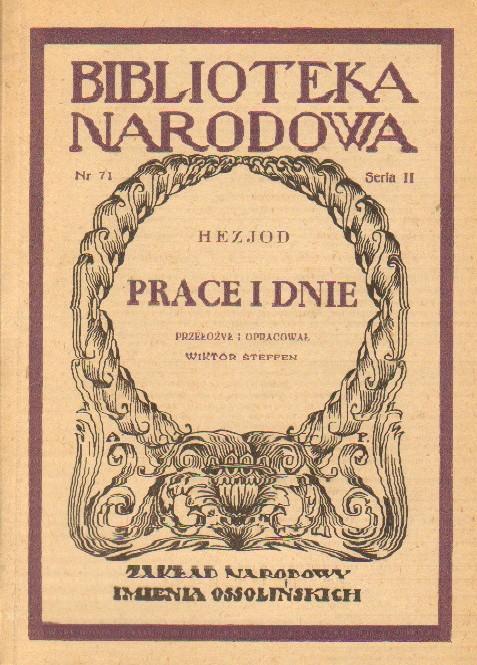 "Prace i dnie", poemat dydaktyczny Hezjoda składający się z rad i przykazań, mający na celu ukazanie sprawiedliwości. Prace i dnie artyzmem nie dorównują wcześniejszym eposom Homera, jednak przedstawiona tu moralność, jaka cechuje bogów jest już wyższego rzędu. Znajdujemy tu pierwszą zapisaną bajkę grecką - o słowiku ginącym w szponach jastrzębia - oraz opowieści o pięciu wiekach ludzkości: złotym, srebrnym, brązowym, heroicznym (czas Homera) i najgorszym, żelaznym, w którym przyszło żyć poecie.