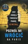 Pozwól mi wrócić B.A. Paris to thriller, w którym głównym bohaterem i narratorem jest Fin. Mężczyzna musiał uporać się z opinią mordercy po zaginięciu swojej dziewczyny, ale postanowił dać sobie szansę na nowy związek. Mimo wszystko ciągle pamięta o Layli, swojej młodzieńczej miłości. Ma też sekrety, które ukrywa przed obecną partnerką.