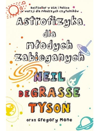 Światowej sławy popularyzator nauki Neil deGrasse Tyson zaprasza w fascynującą podróż po wszechświecie! W bardzo przystępny i dowcipny sposób opowie o niezwykłych tajemnicach, jakie skrywa bezmiar kosmosu. Od elementarnej fizyki po głębokie pytania o naturę czasu i przestrzeni, od najbliższych ciał niebieskich po odległe galaktyki, pulsary i czarne dziury - dzięki tej książce poznacie i zrozumiecie wszystko, co na temat kosmosu mogło wam się kiedyś obić o uszy. „Astrofizyka dla młodych zabieganych” to wspaniała adaptacja głośnego bestsellera Neila deGrasse’a Tysona, napisana z pasją i humorem, a przy tym pełna pobudzających wyobraźnię zdjęć i ilustracji. Neil deGrasse Tyson - astrofizyk, popularyzator nauki, dyrektor Planetarium Haydena przy ­Amerykańskim Muzeum Historii Naturalnej w Nowym Jorku. Prezenter i gość wielu programów popularno­naukowych oraz autor ­ poczytnych książek: Astrofizyki dla zabieganych, Kosmicznych zachwytów i Kosmicznych rozterek.