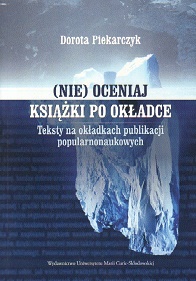"Monograficzne ujęcie problematyki tekstowości okładki Doroty Piekarczyk staje się bardzo ważne: bo przynosi pierwszy kompleksowy ogląd okładki z perspektywy językowej i tekstowej, bardzo dobrze zrealizowany i inspirujący do dalszych badań; bo do wielogłosu badaczy okładki włącza głos lingwisty, który wnosi wiele novum w przestrzeń interdyscyplinarnej wiedzy o okładce (chyba można tu mówić o dotychczasowej dominacji i nobilitacji zwłaszcza książki artystycznej i grafiki książkowej); bo wreszcie obiektem badań czyni Autorka okładkę i teksty na niej w swoistym segmencie piśmiennictwa – to publikacje popularnonaukowe – tworzącym pomost między wiedzą naukową a społeczeństwem". /fragment recenzji prof. dr hab. Małgorzaty Kity/