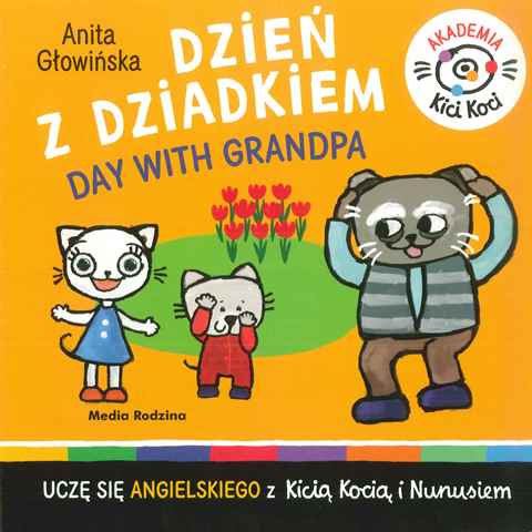 „Akademia Kici Koci. A day with grandpa”, czyli ucz się angielskiego z rezolutną Kicią Kocią! Kicia Kocia i Nunuś spędzają bardzo miły dzień z dziadkiem, a przy okazji uczą się angielski zwrotów. Nunuś chętnie zapamiętuje nowe i ważne słówka. W Akademii Kici Koci najmłodsi czytelnicy odkrywają świat i przydatne słowa z najbliższego otoczenia. „Dzień z dziadkiem” to czwarta książeczka z serii, w której Kicia Kocia i Nunuś uczą maluchy. Poprzednie to „Kolory” i „Pojazdy”, a także „Plac zabaw - Playground”, również do nauki angielskiego. Jest to już druga książka, dzięki której dziecko w sprytny sposób zetknie się z językiem angielskim. Co bardzo ważne, Kicia Kocia nie operuje bowiem pojedynczymi wyrazami, a pełnymi komunikatami. Dzięki temu - podobnie jak z przyswajaniem języka ojczystego - nauka jest naturalna i intuicyjna. Are you ready?
