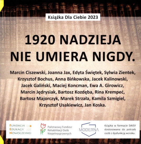 Książka w formacie DAISY dostosowana do potrzeb osób z dysfunkcją wzroku, wydana przez Fundację Edukacji Nowoczesnej z Warszawy oraz Fundację "Moderna" z Jeleniej Góry w ramach projektu "Książka dla Ciebie 2023".