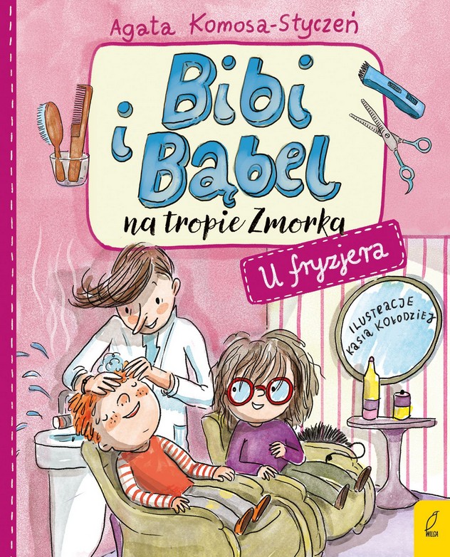 Jak wszystkie dzieci, Bibi i Bąbel czegoś czasem się boją. A - jak wiadomo - boimy się tego, czego nie znamy. Rezolutne rodzeństwo w każdej książce rozprawia się z charakterystycznymi dziecięcymi strachami i trudnościami, których uosobieniem jest mały stwór - Zmorek. Tropią go w przychodni podczas wizyty u lekarza, w ciemnościach, nad wodą, na wakacjach, by przekonać się, że strach ma TYLKO wielkie oczy... Bibi i Bąblowi urosły włosy. Czeka ich wizyta u fryzjera. Bliźniaki nie są z tego zadowolone. Boją się, co je tam czeka, a najbardziej obawiają się spotkania ze Zmorkiem. Jaki przebieg będzie miała wizyta w salonie fryzjerskim pana Kędziorka? Czy jest się czego bać u fryzjera? Poza wciągającym tekstem, książki aktywizują dzieci. Ich zadaniem jest znalezienie na każdej rozkładówce małego stworka o imieniu Zmorek. Na końcu książki znajduje się komentarz psychologa o dziecięcych lękach oraz karty do gry memory.