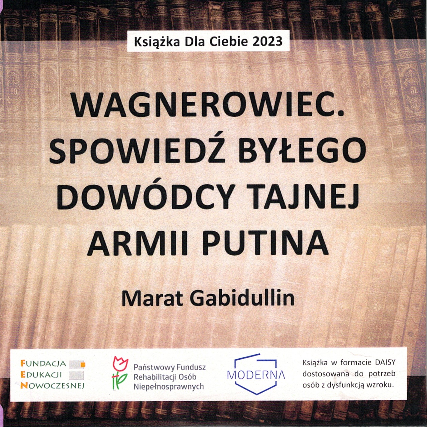 Książka w formacie DAISY dostosowana do potrzeb osób z dysfunkcją wzroku, wydana przez Fundację Edukacji Nowoczesnej z Warszawy oraz Fundację "Moderna" z Jeleniej Góry w ramach projektu "Książka dla Ciebie 2023".